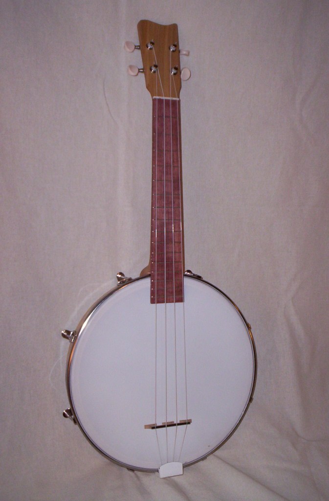 Banjolele built with hand drum, mahogany, and purpleheart wood